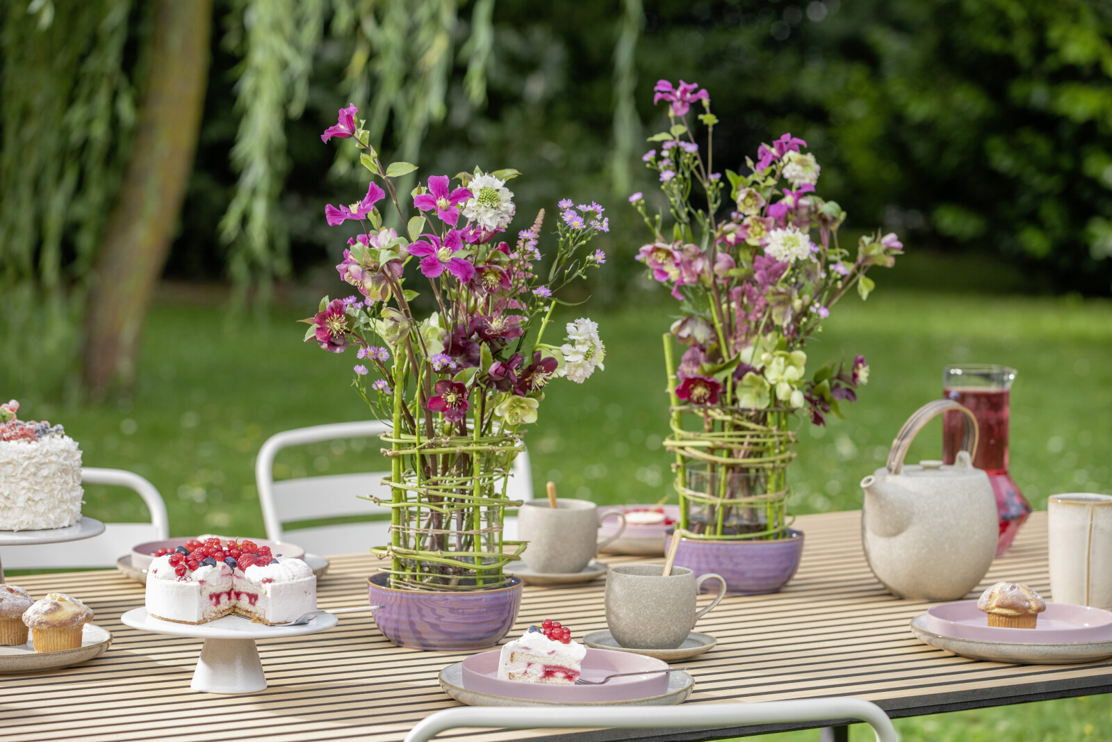 The Clematis is available in different colours. The most common colours are white, pink, purple and blue.