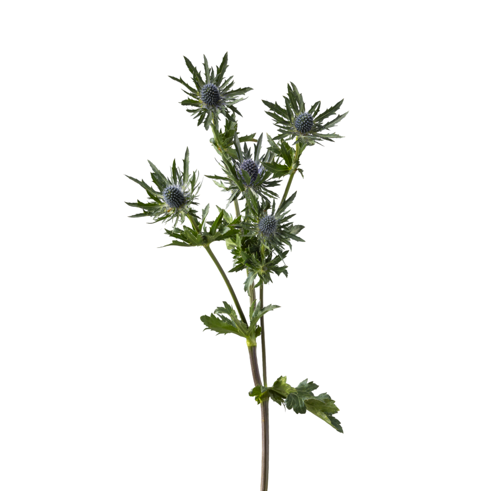 Eryngium is verkrijgbaar in verschillende kleuren, zoals blauw, zilver, groen en paars.