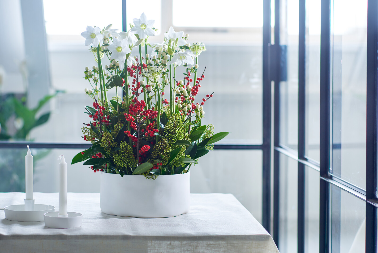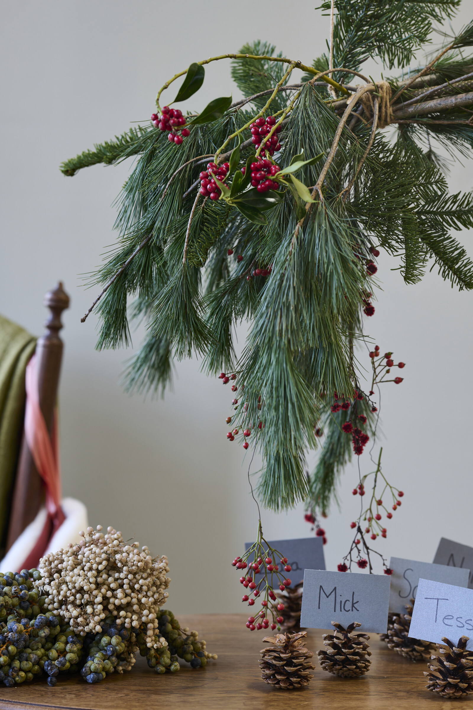 The dark green leaves of the Ilex create a lush and vibrant appearance, while the bright red berries are a striking contrast.