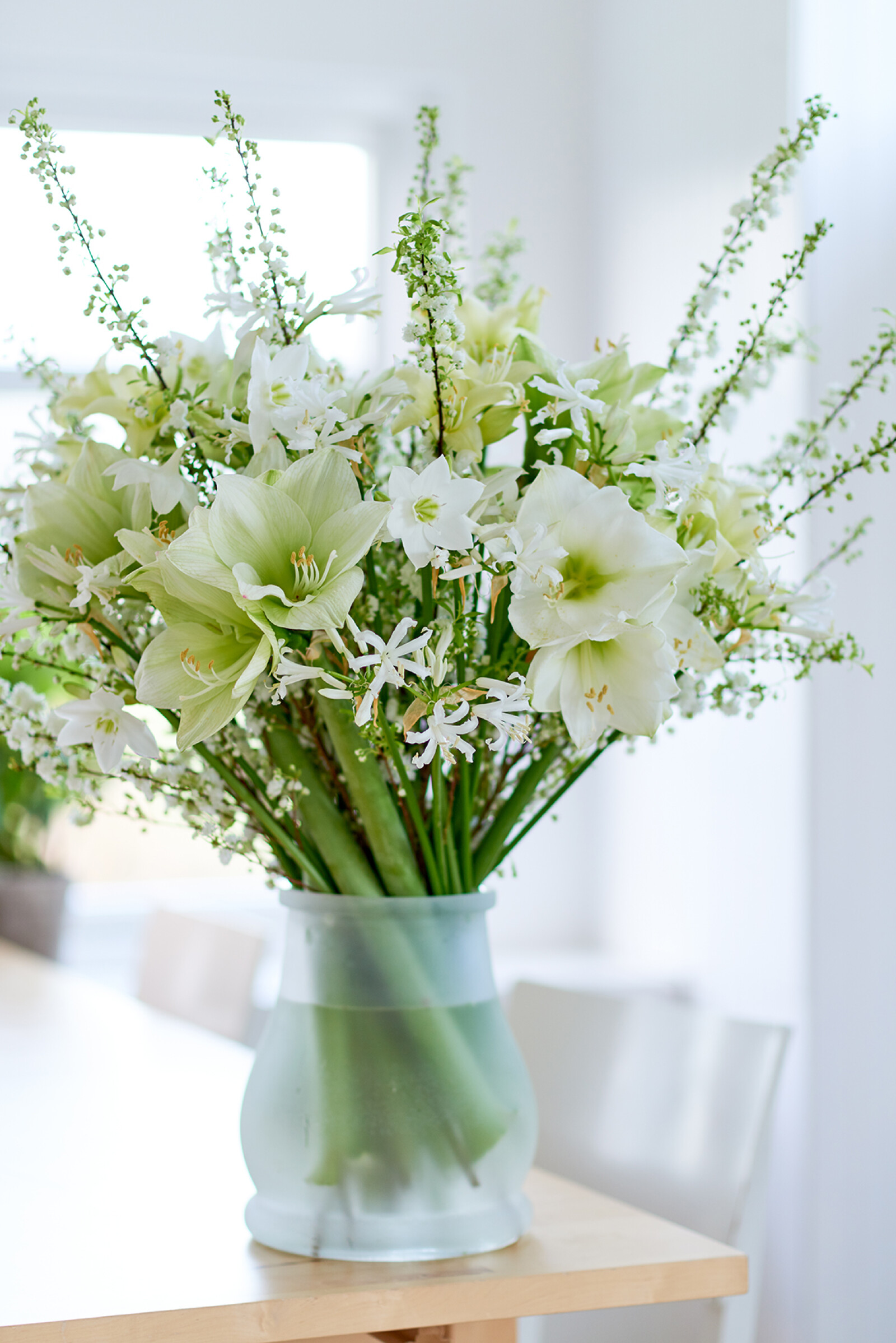 With its delicate flowers and slender stems, the Nerine adds a disarming element to any setting. Perfect as a subtle filler in a bouquet.