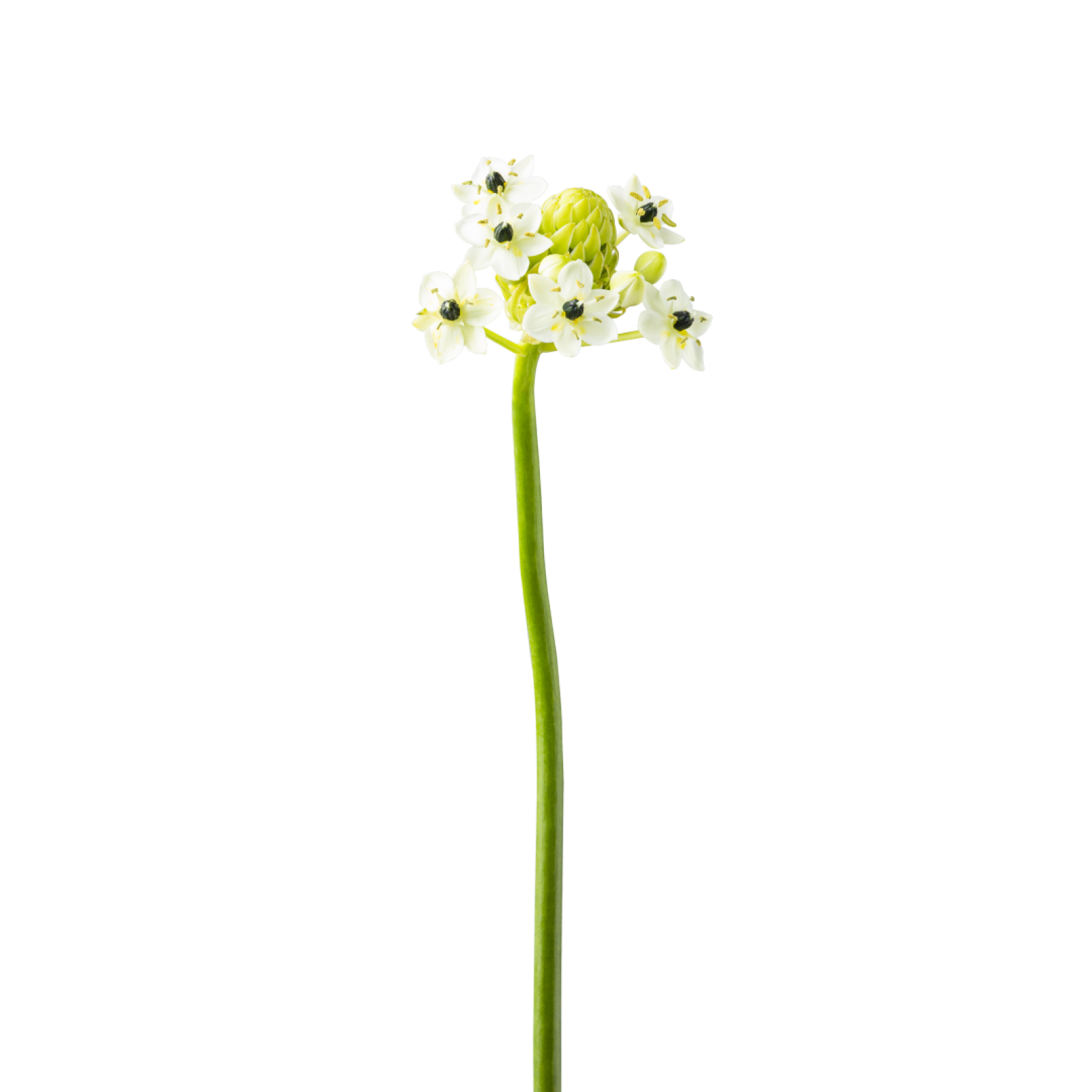 Ornithogalum, also known as bird's nest, has six white petals with a green heart in the centre. The shape of the flower is reminiscent of a bird's nest.