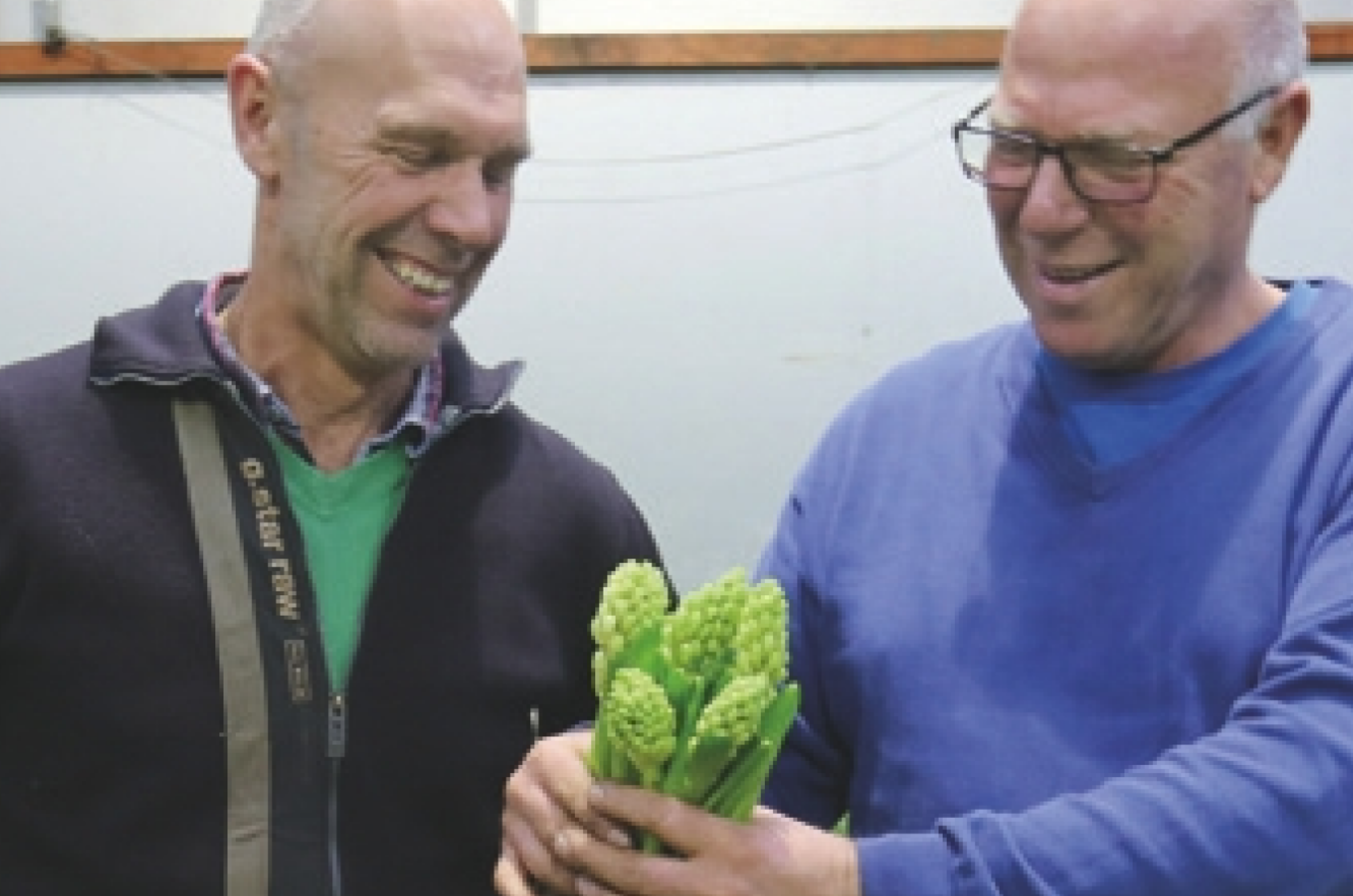 At John and Rene van der Slot's nursery the hyacinths are in roll greenhouses. Their nursery is on the coast in the bull districts, where bulb growers and forcers have traditionally been located. 'We cover the soil with a layer of straw, John says. 'That provides an insulating cover!